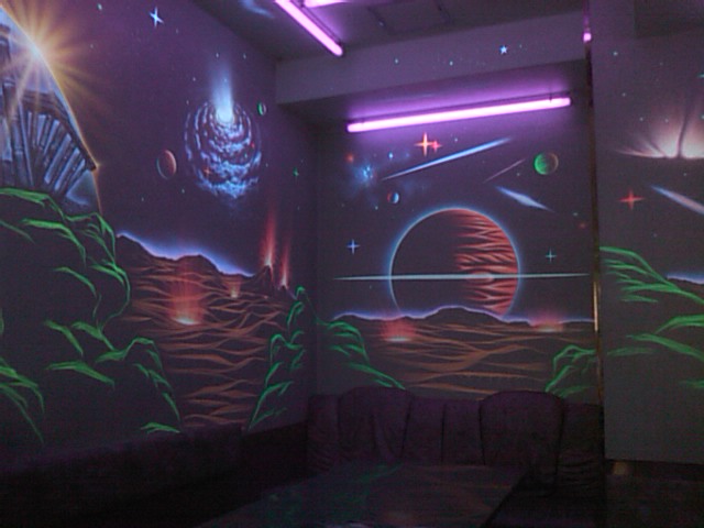 部屋もきれい。ブラックライトでワシの白パーカーがすごいことになってたw